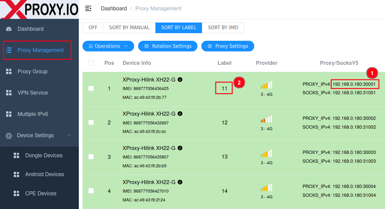 Look at the screenshot of Step 2, you can see the Label (2) of this proxy (192.168.0.180:30001) is number 11