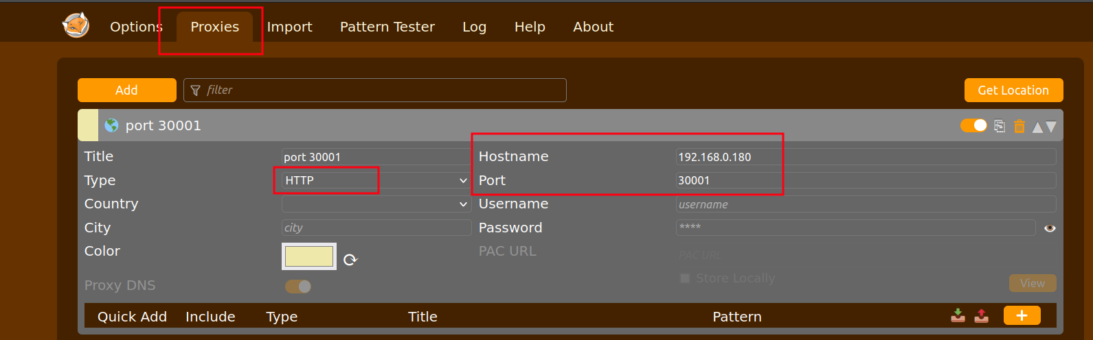 - Fill this proxy into Foxyproxy extension (noted, fill your info proxy copied before):