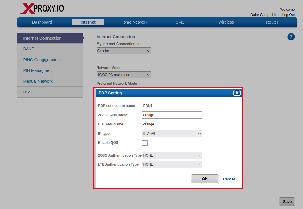- 2G3G Authentication Type / LTE Authentication Type: choice Authenticaion PAP/CHAP depend on operator required.