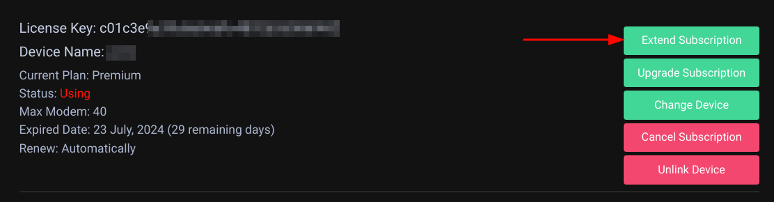 - You can extend your license anytime, the remaining days of current subscription will be retained.