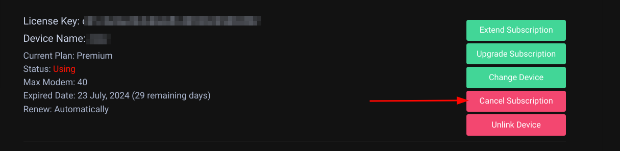 - This function help you cancel your current license to decide start new subscription in case merge or split between license you have.